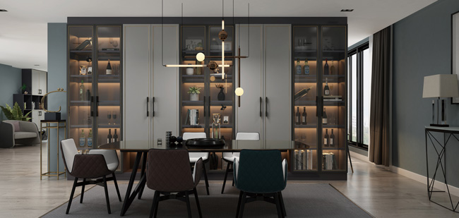 清新优雅的配色,配以金属线条,看起来干净优质。在木制电视墙的背景下,它创造了一个高水平和艺术的客厅空间。生活中有一些小惊喜。在客厅靠窗设计一个小酒吧,洒一缕阳光,吹一阵阵晚风,平日坐在酒吧品酒看书,缓解快节奏生活带来的压力。