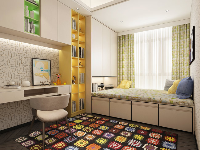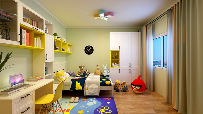儿童房是孩子主要活动的地方,学习、玩耍、休息都在这里,特别是孩子上学后,需要长时间的写作业,灯光选不好,对孩子的视力是有很大影响的。
